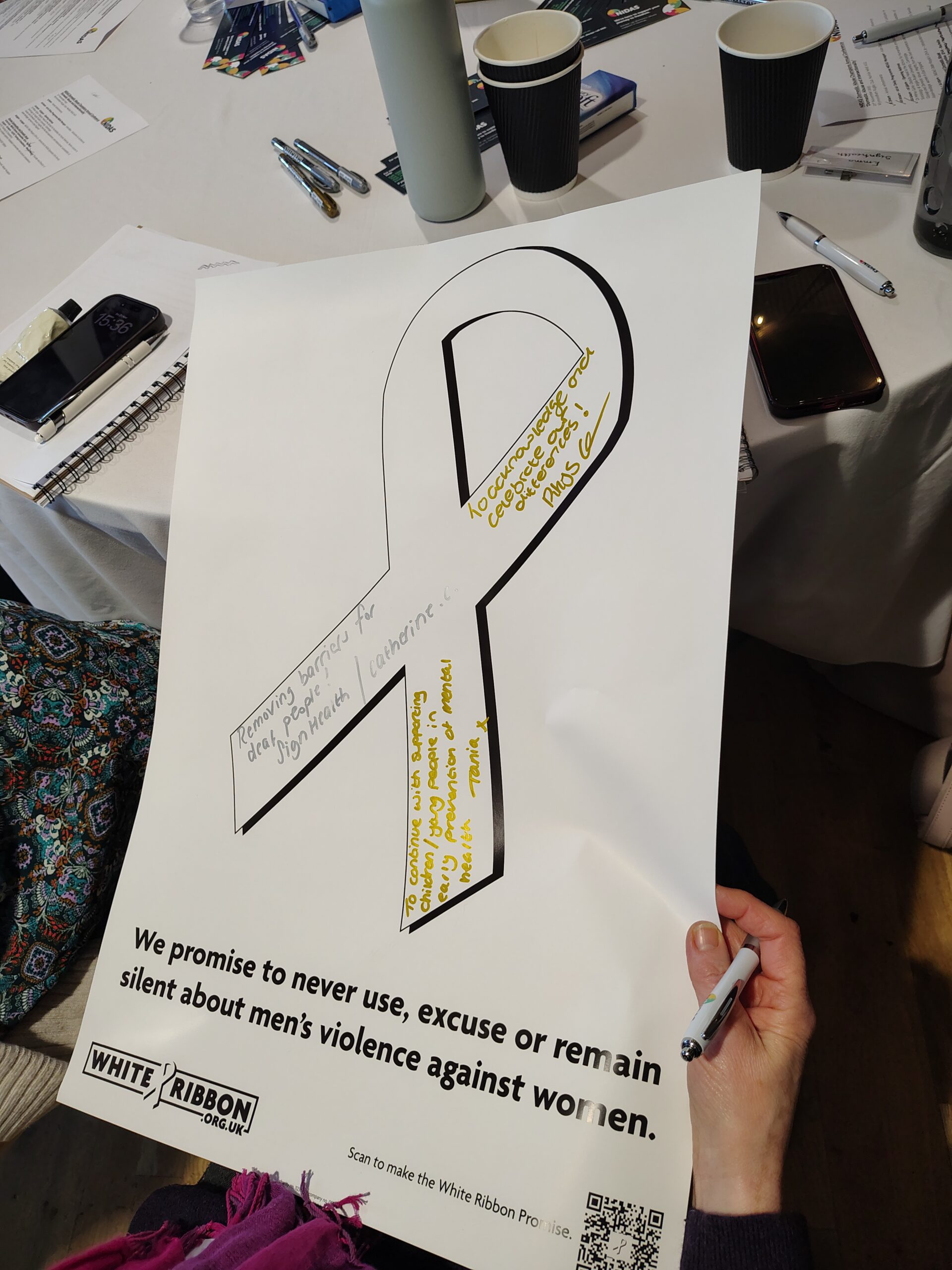 NIDAS welcome delegates to sign White Ribbons as part of 16 Days of Activism Against Gender-Based Abuse.